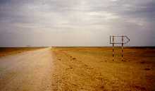 We gaan terug tot het punt waar we nog wisten waar we waren en nemen de eerste de beste zijweg in de goede richting. De GPS is het daarmee eens. Gelukkig zitten we nu goed. In Shalim kopen we brandstof en eten. Op de kaart lijkt het dorp heel wat, in werkelijkheid is het een zeer armoedige bende. Geiten lopen een kartonnen doos op te vreten. We rijden uren over een eentonige vlakte. Het aanleggen van de weg is kennelijk bepaald door het constructiegemak. In de richting van de kust zien we namelijk woeste kloven en rotsen.