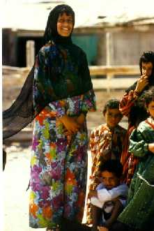 We bezoeken de waterfabriek, die wordt gerund door Indiërs. Jammer van het ongunstige tij. In de verte ligt het eiland Mahawt. Dat is helemaal begroeid met mangroves. Het ziet er heel intrigerend uit. s Middags rijden we naar Hayi, een vrij grote plaats. Met oude huizen, gestempelde nieuwbouw en een winkelstraatje. Er lopen veel (vieze) kinderen op straat, die er heel vrolijk uitzien. Ruud gaat water kopen, ik blijf in de auto. Aan de overkant van de straat staan vier meisjes naar me te staren. Een van de meisjes kijkt me als gebiologeerd aan en zonder me een moment uit het oog te verliezen steekt ze de weg over en loopt ze naar mijn kant van de auto. De andere meisjes, een knappe zelfbewuste en twee heel verlegen kleintjes, komen achter haar aan. Ik geef hun alle vier een hand en maak er een foto van. Het is jammer, maar altijd weer komen er van die brutale knullen voor staan die je bijna opzij moet duwen. Dat laat ik maar aan Ruud over, naar hem luisteren ze wel. Hij steekt met zijn 1 meter 80 boven iedereen uit, en dan nog met blauwe ogen, blond haar en een snor. De kleine kinderen vinden het volgens mij maar eng. Ze deinzen nogal eens achteruit als hij uitstapt.