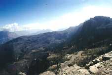 Het was een koude nacht. De temperatuur kwam volgens ons niet boven de 5 graden uit. De donzen slaapzakken waren heerlijk warm. Het kost echt moeite om er s morgen uit te gaan. We maken een ochtendwandelingetje en rijden daarna naar het einde van de weg. Onderweg ontdekken we vanzelfsprekend een prachtig kampeerplekje: een soort hoogvlakte met dikke bomen, ingesloten van rotsen. Dat is het erge van wild kamperen. Tegen donker zet je de tent op, maar je weet bijna zeker dat er verderop een heel mooi tentplekje is. Men mag wel stellen dat het allemaal verbijsterend en spectaculair overkomt. We klauteren een hoge rots op. Beneden liggen dorpen met terrasbouw. Ze zijn erg dichtbij, maar alleen te bereiken vanaf de andere kant van de bergketen.