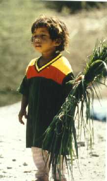 Na de lunch - we kunnen er weer even tegen - gaan we de bergen in. De weg omhoog is buitengewoon spectaculair. Meermalen roept Ruud: zon weggetje heb ik nog nooit gereden! Hier en daar is de weg door de regen lichtelijk weggespoeld. Er zijn enkele nederzettingen met drie of vier huizen. Er zitten vrouwen te praten en er zitten mannen te praten. Er lopen geiten omheen. De kinderen vermaken zich buitengewoon, ze spelen buiten. Blootsvoets rennen ze over de rotsen. Het ziet er heel ontspannen uit. En dan te bedenken dat deze huizen hemelsbreed maar 30 kilometer van de 20ste eeuwse moderne wereld af liggen.