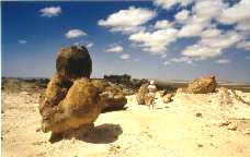 Ruud treft een grote ronde steen aan op een steeltje van kalk. Hij duwt de steen er vanaf. Is dit nou barbaarse vernielzucht of preventie. Je kunt net zo goed zeggen dat de steen anders op een kindje terecht had kunnen komen. De foto laat de steen voor het laatst recht op zien. In Duqm lukt het inderdaad om dollars te wisselen voor rials. De man uit Bangladesh neemt ons mee naar een schuurtje dat wat terzijde staat. Daar opent hij zijn koffertje. Er zit geld in. Veel geld, volgens ons. Hij is in geen drie jaar thuis geweest en heeft kennelijk goed kunnen sparen.