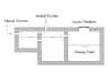 Large septic tanks work similar to individual >septic tanks, except that they serve multiple households, receiving effluent from a sewerage network. Generally, they are divided into three compartments or use two parallel tanks (as illustrated). SANEX assumes that the communal septic tank is the final treatment stage (instead of e.g. >activated sludge treatment) in a process train. Thus, its treatment efficiency is equivalent to >primary treatment, with removal rates of over 40% of >BOD and around 65% of >suspended solids. Pathogen removal is poor, and effluent is very hazardous from a health point of view. Communal septic tanks can receive wastewater from toilets as well as >greywater. |