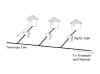 The drain field is designed for the on-site disposal of sewage. It is an area of land consisting of one or several long trenches, into which sewage is discharged through underground perforated pipes. The sewage percolates into the ground while it is decomposed by bacteria in the soil. Usually, one drain field receives the effluent from one >septic tank or aquaprivy. If sized large enough, a drain field can also accept >greywater. |